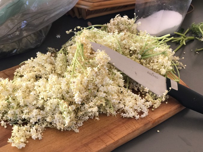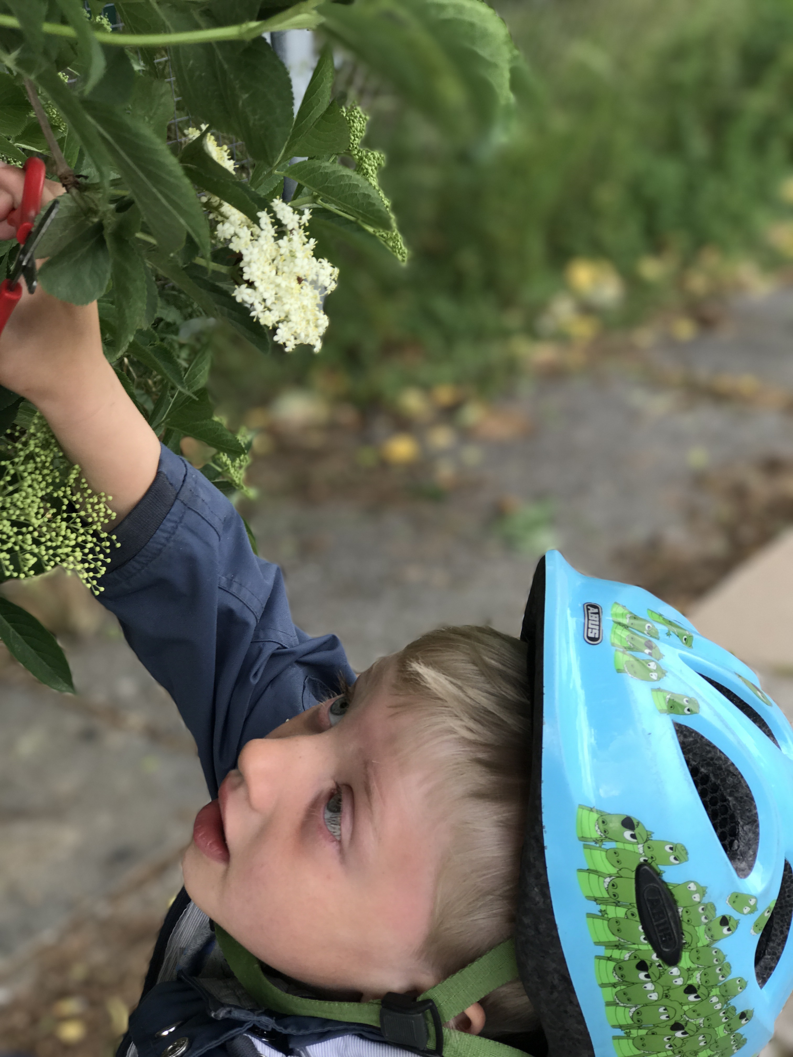 Hylden blomstrer i alle kroge og det er for mig indbegrebet af sommer, når duften breder sig på cykelstierne. Viggo og jeg har tradition for at gå på rov og han er så sej til at klippe skærmene af.