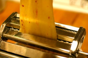 Jeg lavede 3 slags pastaer, eller dvs. jeg lavede samme grunddej og så kom jeg forskellige krydderurter i.