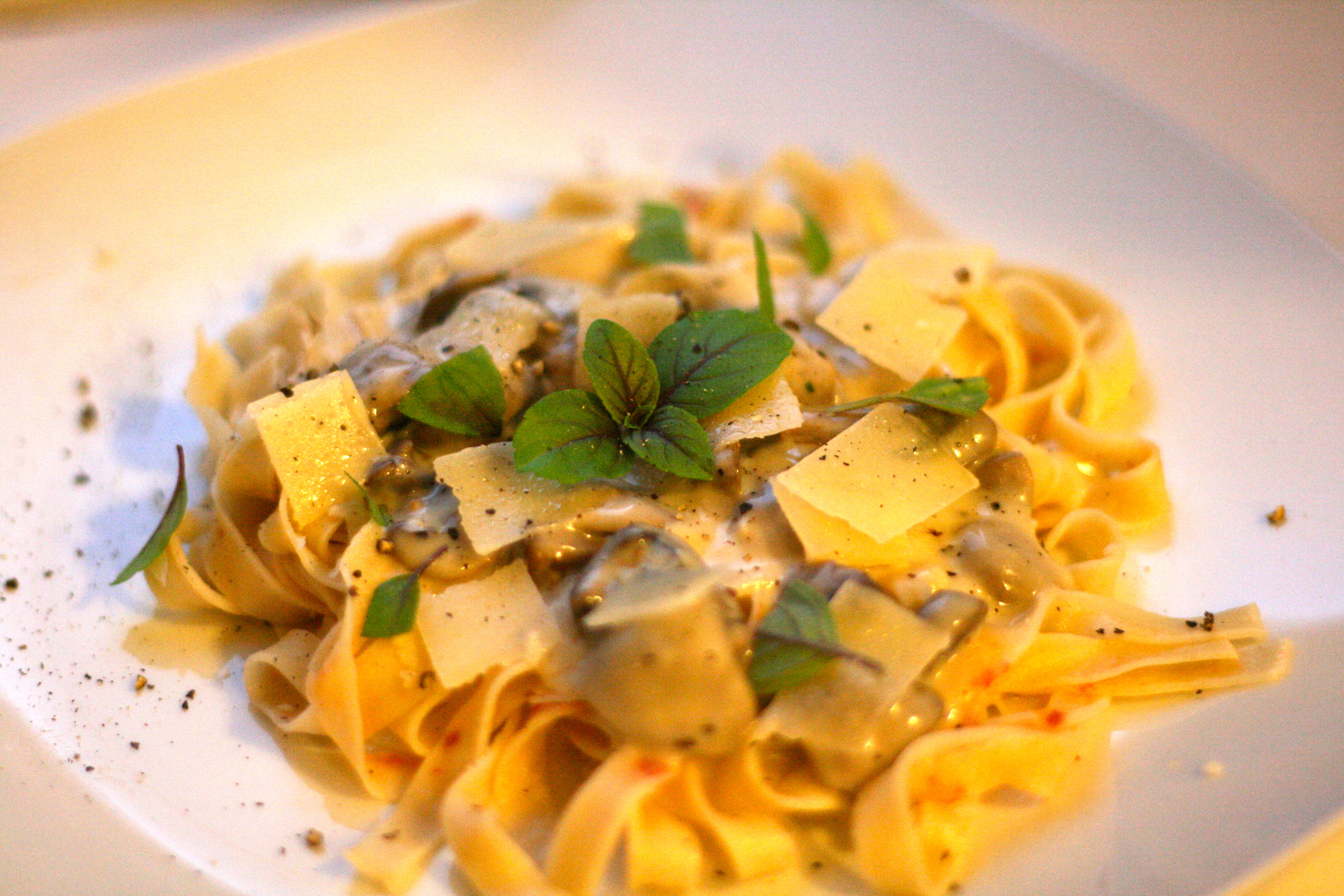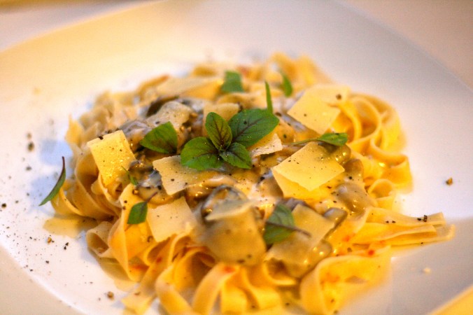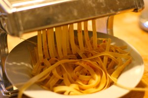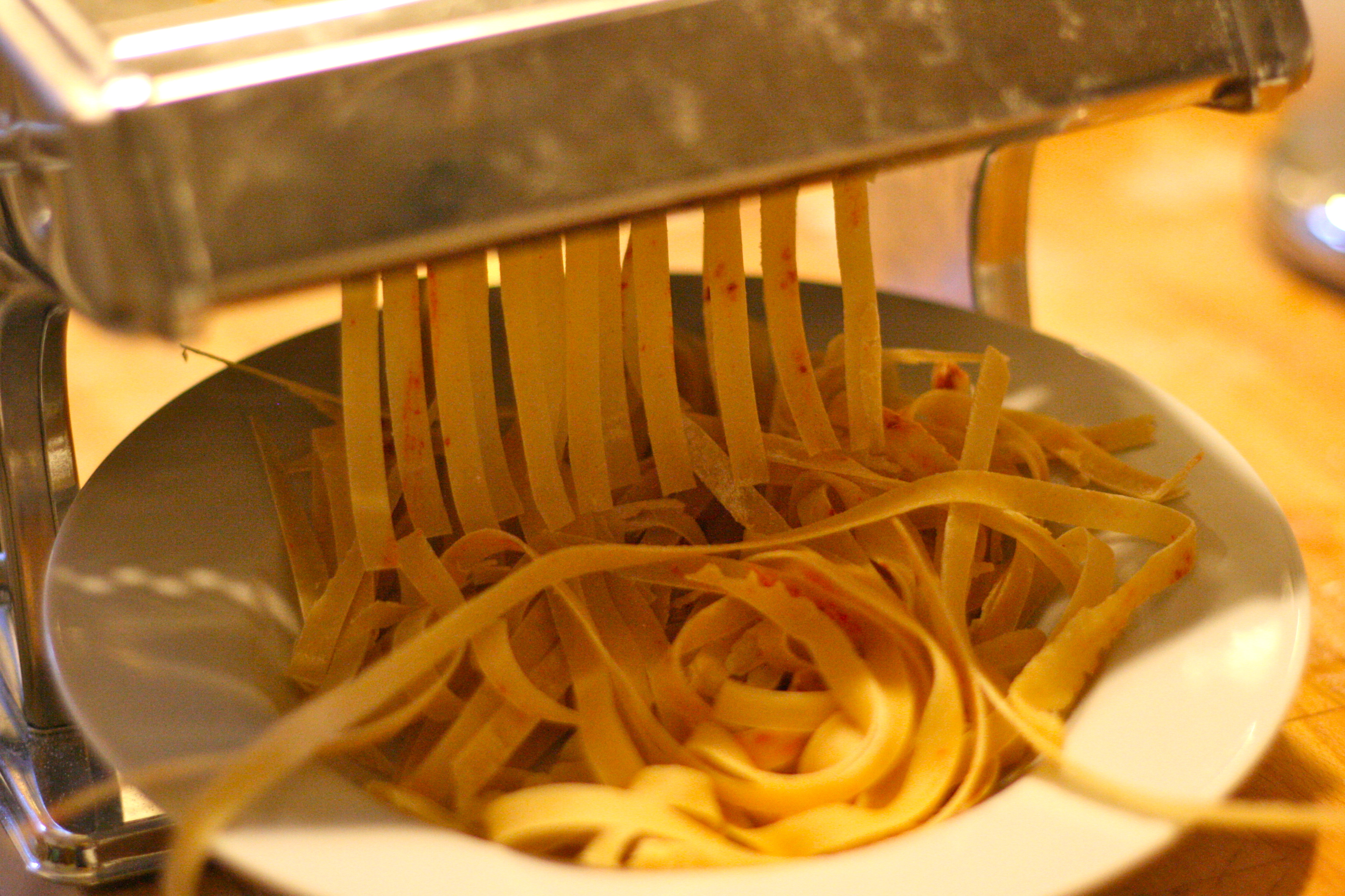 Hjemmelavet pasta er selvfølgelig ikke lige noget man laver efter en travl dag på arbejde, men det er sådan en overskudsret, fordi den kræver lidt, og er efter min mening det hele værd. Men selve opskriften og fremgangsmåden er simpelthen super let. Jeg har en Jamie Oliver pastamaskine, som fås til ca 300-400 kr. Hvis man køber en pastamaskine kan det godt betale sig at købe en ordentlig en – de billige skærer ikke pastaen ordentlig over. Hjemmelavet pasta kan også sagtens laves uden maskine – man skal bare have en kagerulle og en kniv os så rulle og skære en del.