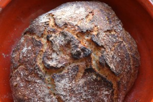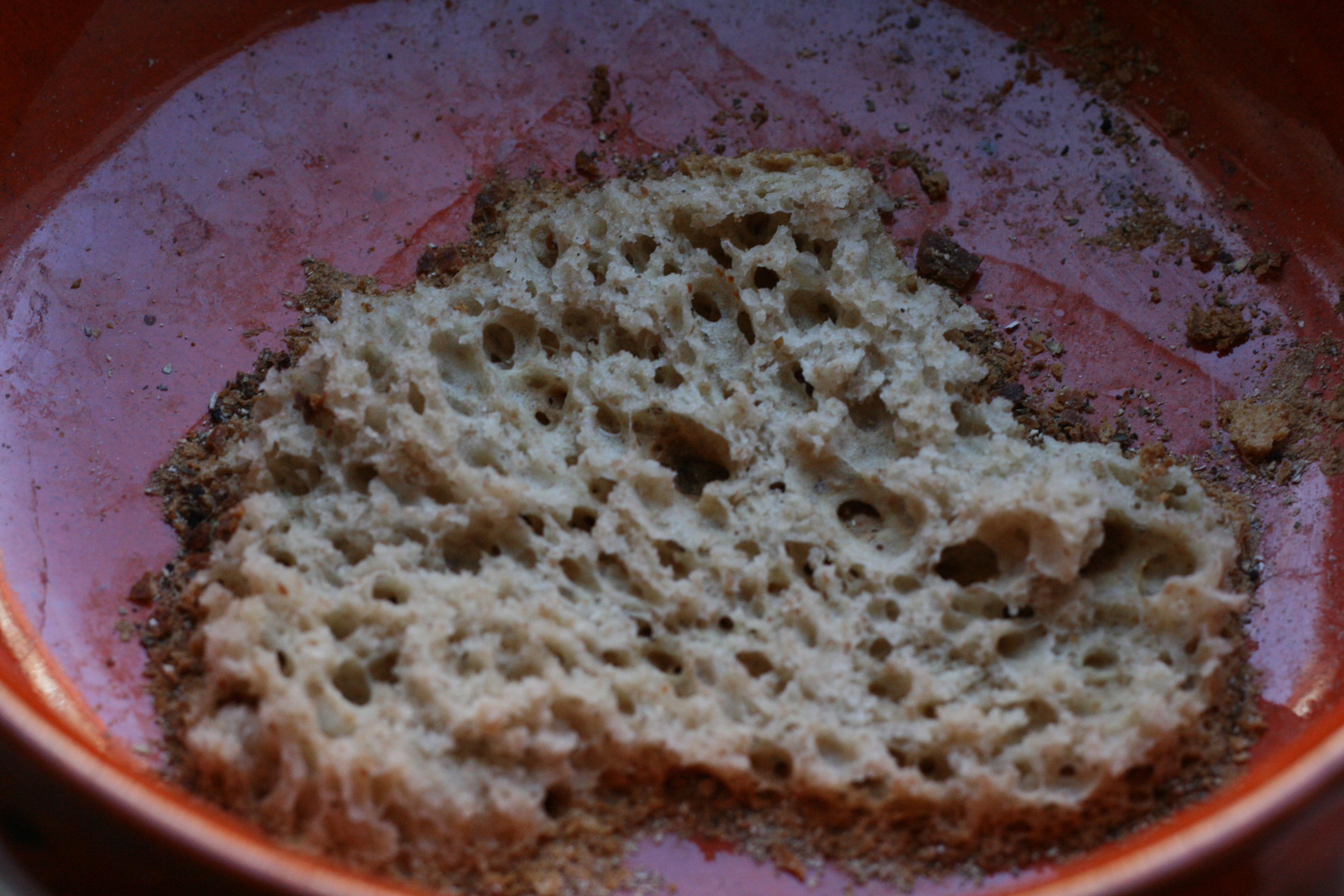 Jeg vil lige starte med at vise et eksempel, når man bager “No knead” brød. Det er nemlig meget vigtigt, at ovnen og gryden er ordentlig varm. Det skal faktisk ryge, når du løfter låget. Ellers så sker der her, som på billedet nedenfor; bunden brænder nærmest fast i gryden og det er en skam, når nu brødet er så lækkert.