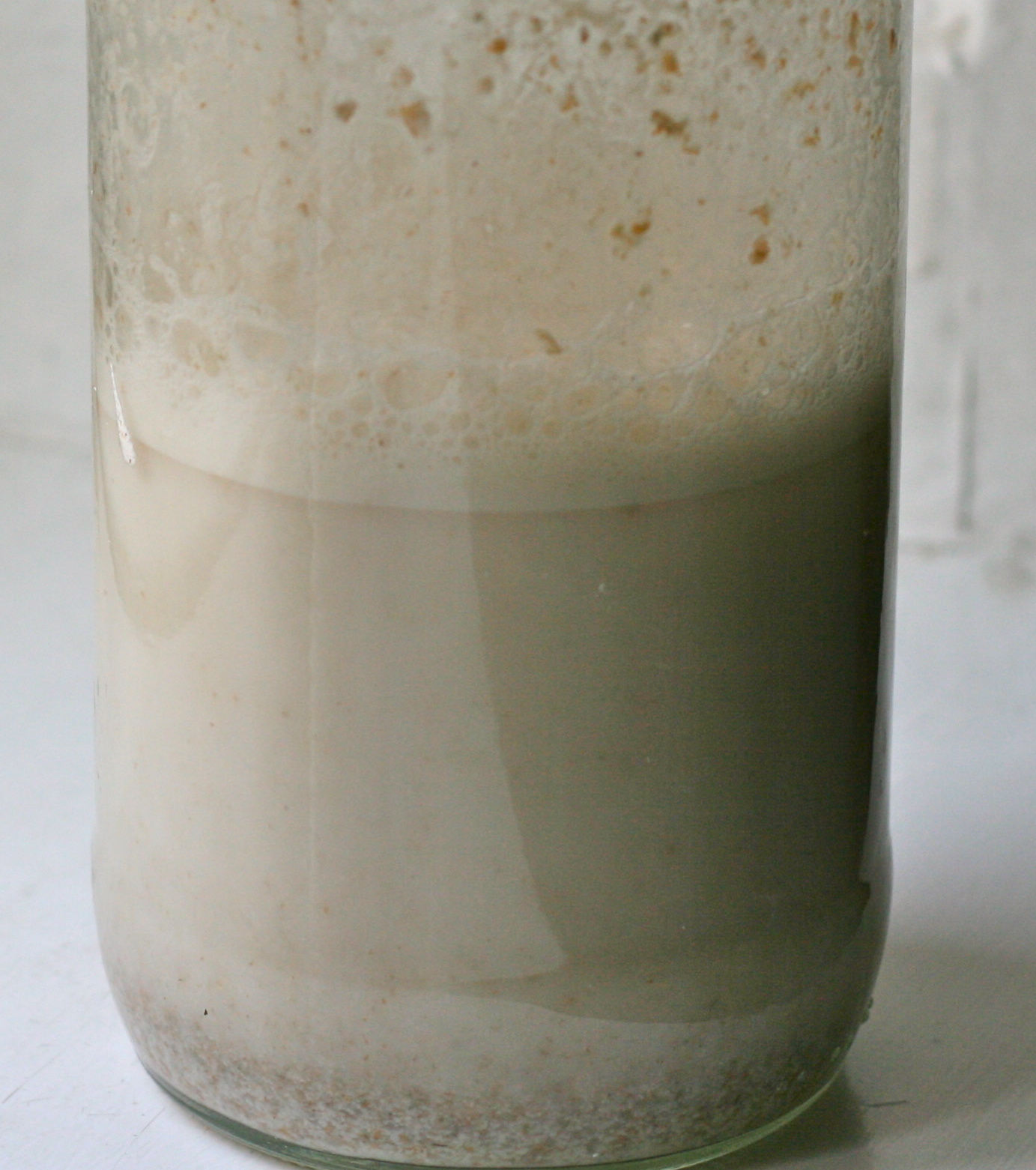 Hæld alle ingredienser i en bøtte og rør det godt sammen – ryst det evt. Herefter skal surdejen stå ved stuetemperatur med låget halvt på. Rør i surdejen en gang om dagen. Efter 8-10 dage er surdejen klar til brug.