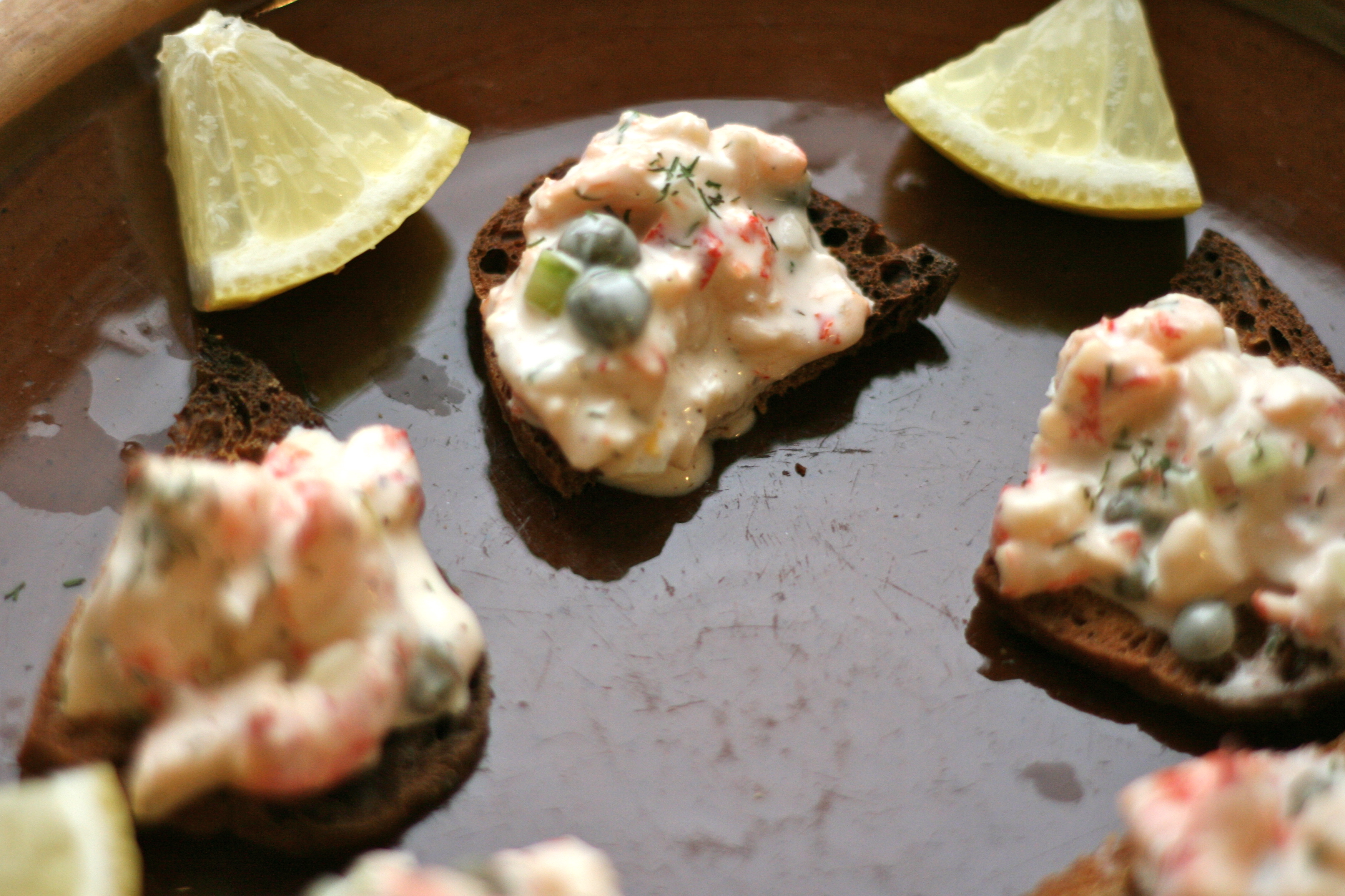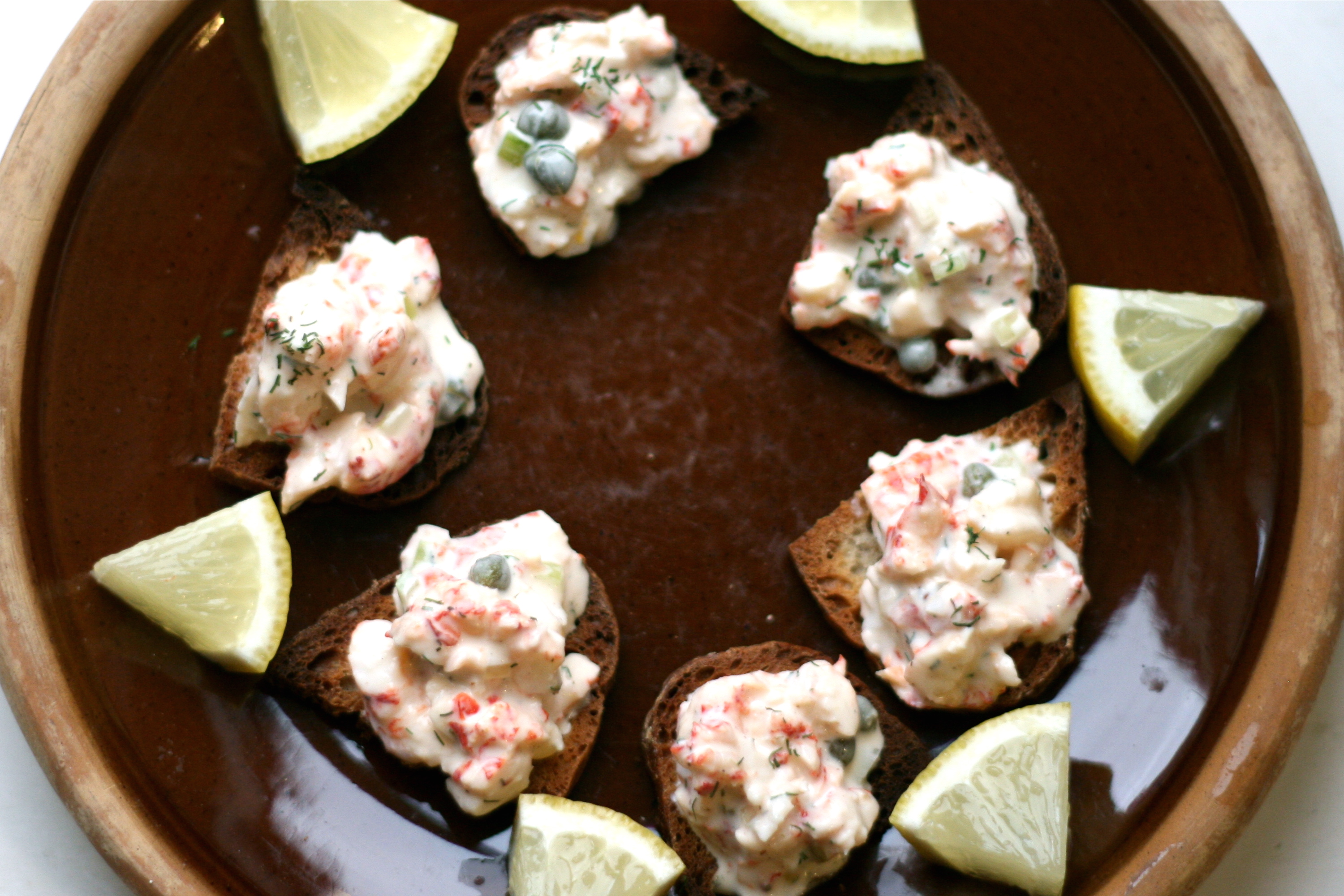 Denne krebsehalesalat af en af de opskrifter, som jeg er mest stolt af. Den smager fuldstændig fantastisk. Jeg ristede noget “gammelt” brød på min bagesten – det giver den lille bid både en bitter smag og en sprød fornemmelse.