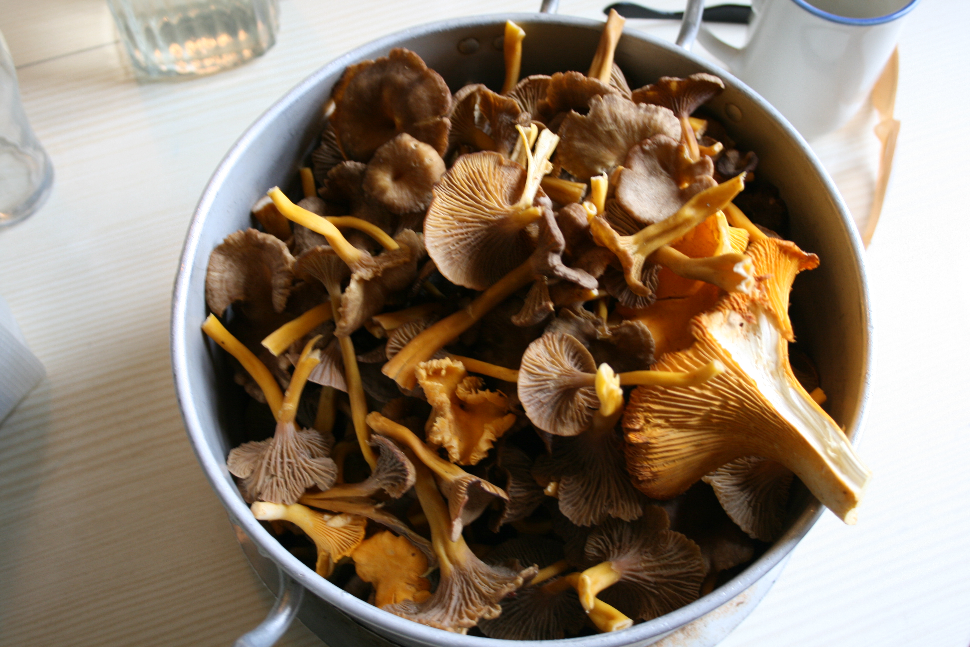 Da jeg var i Sverige med min madklub her i september fandt vi ubeskriveligt mange kantareller. Så mange, at man godt kunne tillade sig at lave en sovs til to, hvor vi hver fik 250 gr. Jeg har har lige været på udgik i de danske skove efter kantareller, men kom hjem med en meget tom pose, øv!