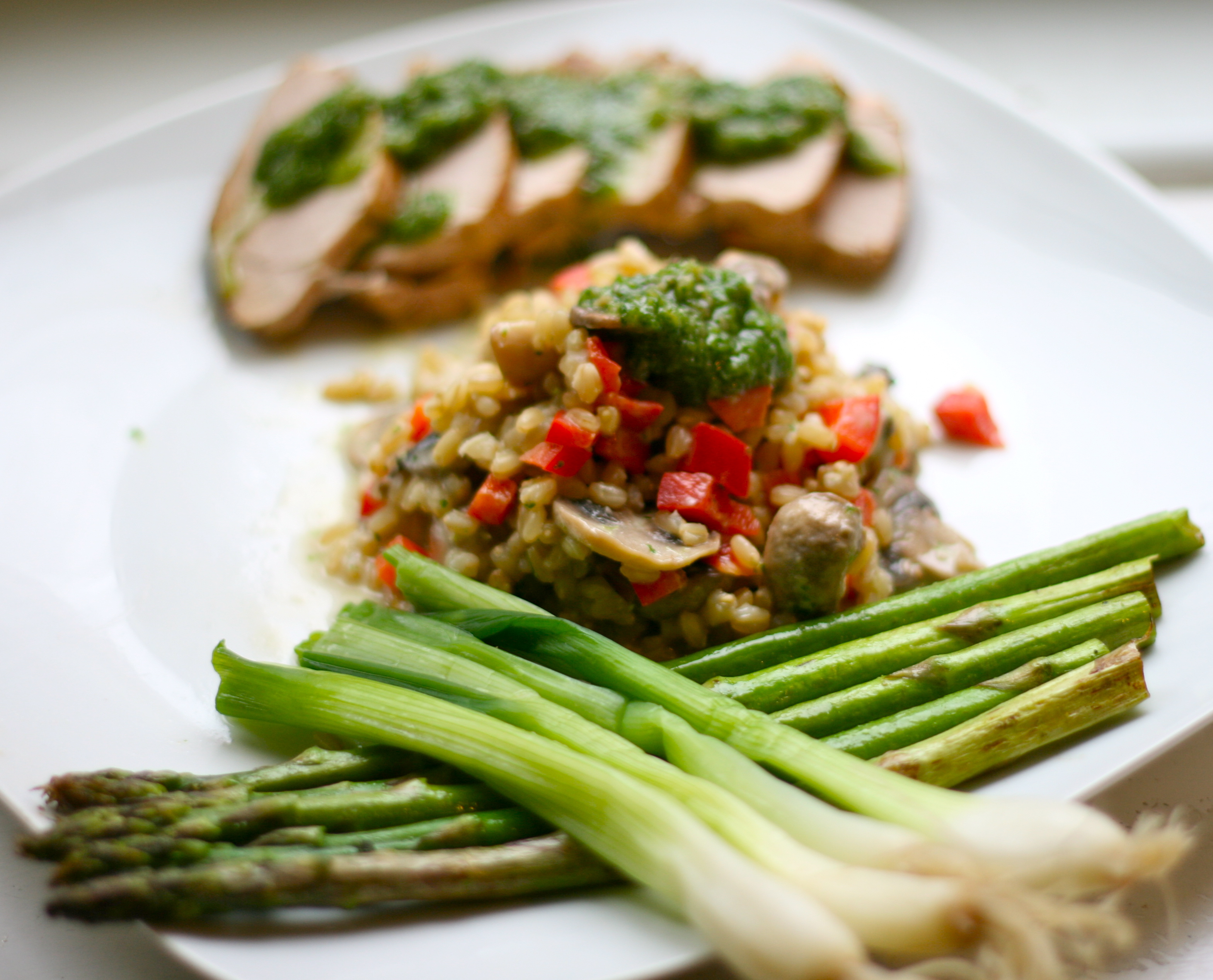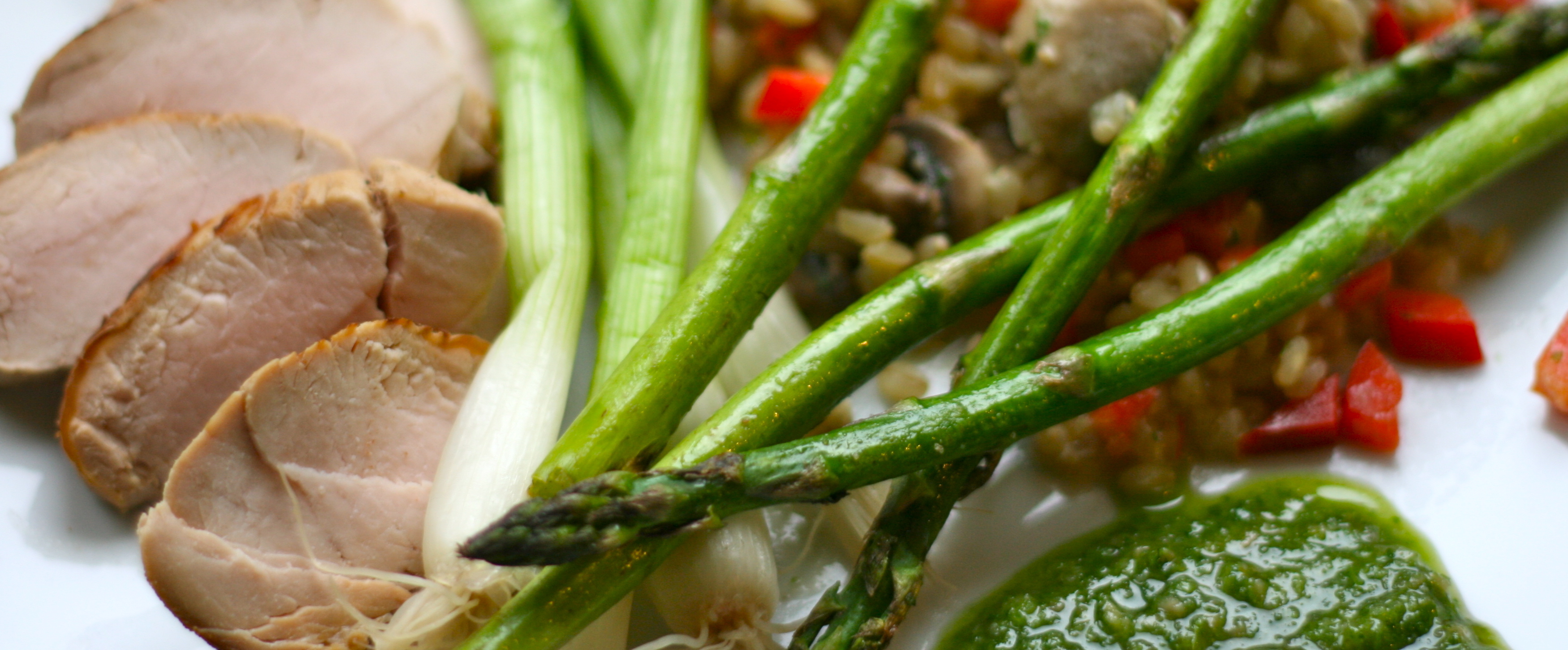Denne ret tog sit udgangspunkt i en svinemørbrad fra dagen før, hvor vi holdte 30 års fødselsdag. Jeg synes ikke det klæder en svinemørbrad at blive varmet op igen, så vi spiste den kold til en varm hvedesalat.