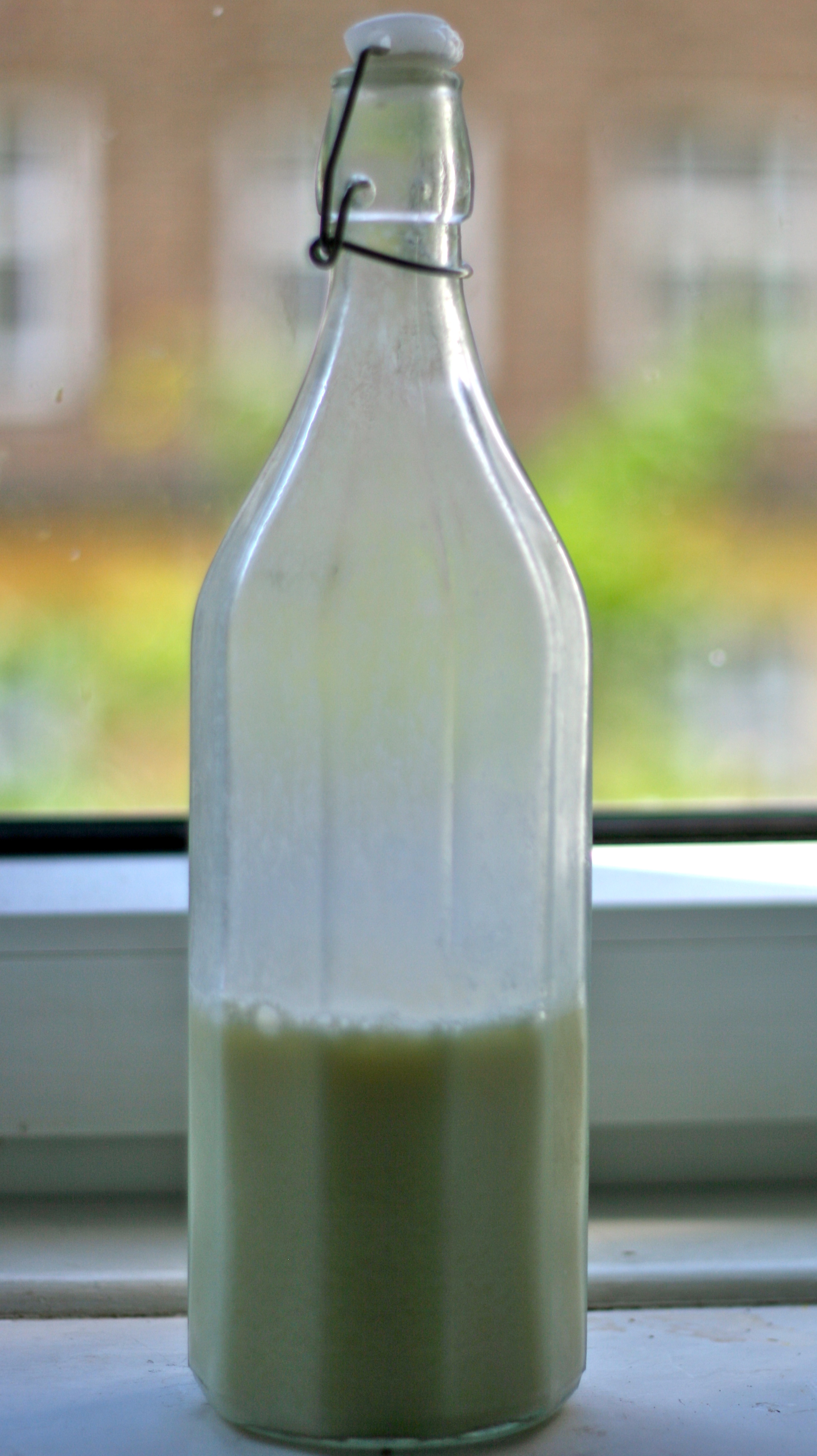 Når det har kogt, skal det løbe igennem en si med et viskestykke. Her vil du si dét, der hedder okara fra. Det kan man gemme og bruge i fx brød. (jeg er ved at eksperimenterer med dette, så forhåbentlig kommer der snart en opskrift på noget godt). Når det hele er siet fra, skal der sukker og salt i (alt afgørende for en god smag) og så er det ellers klar til at komme på flaske.