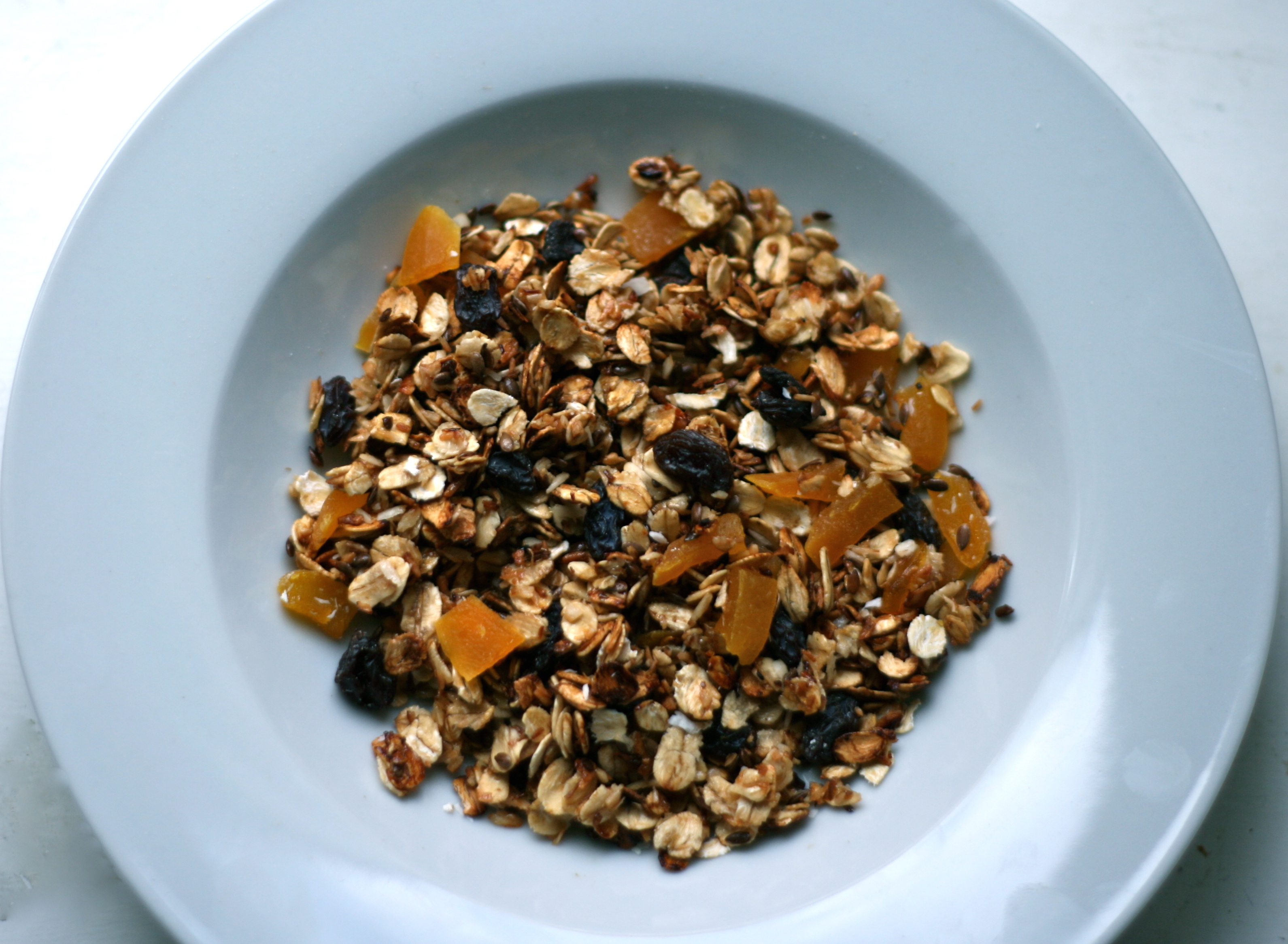 Hvis man kan lide den crunchy, så anbefaler jeg at opvarme havregrynene, hørfrø og kokosmel på panden. Først rist det tørt og når hørfrøene begynder at springe hældes den ønskede honning over. Når grynene er kolde blandet det hele sammen og opbevares i en dåse. Det skal dog siges, at den crunchy müsli, smager bedst en måned efter den er lavet. De ristede hørfrø kan nemlig godt blive bitre med tiden.