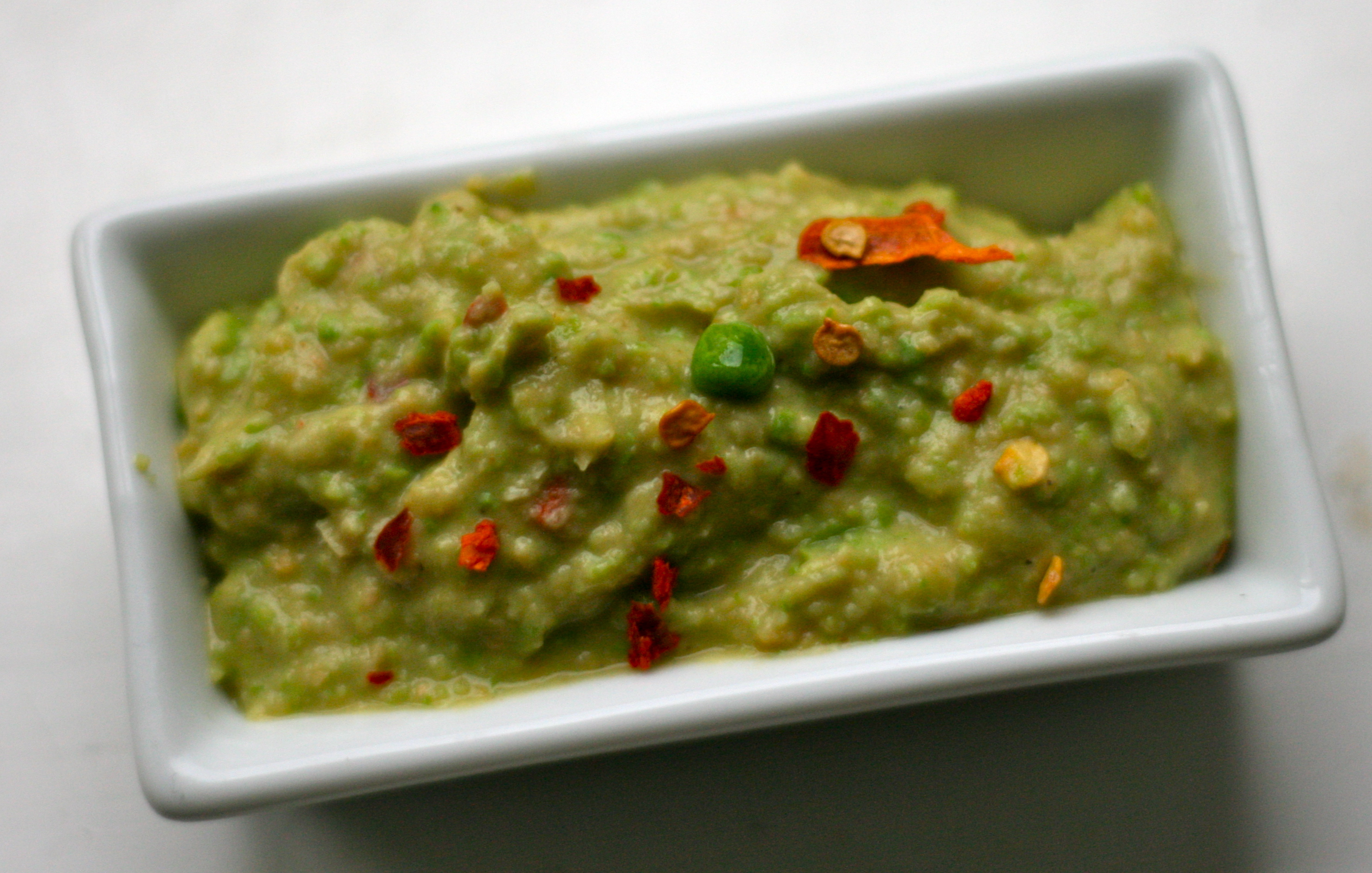 Denne humus er mere eller mindre bare ligesom den normale humes tilføjet grønne ærter og chili. Ærterne giver humusen ekstra sødme, som giver et godt modspil til det stærke.